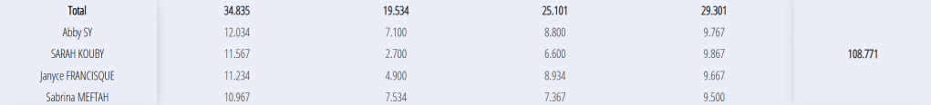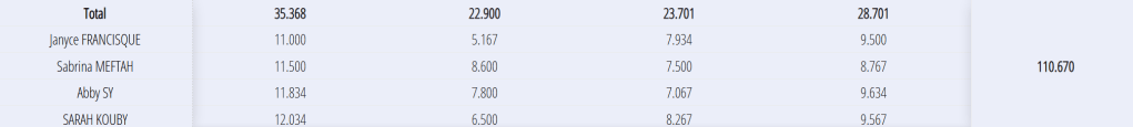 Equipe Fédéral A 10,5 : 14 ans et + Abby, Sarah, Sabrina, Janyce départementale 1 5 sur 7 départementale 2 1 sur 3 Inter-départementale 6 sur 13 FINALE Régionale 12 sur 12