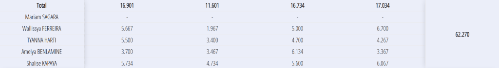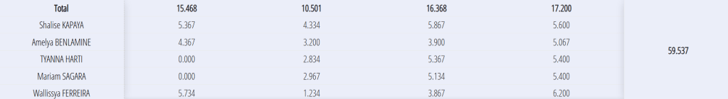 Equipe Fédéral A 7,5 : 10-15 ans wallyssia, tyanna, shalise, mariam, amelya départementale 1 6 sur 15 départementale 1 1 sur 9 inter-départementale 1 22 sur 24 FINALE interdép 15 sur 15