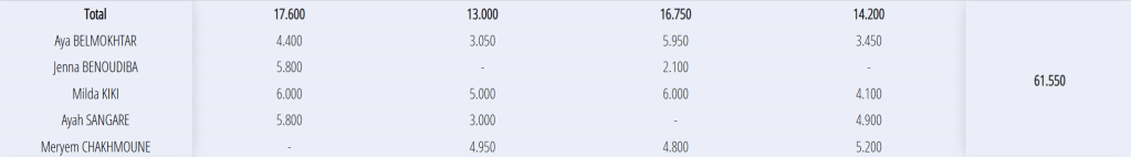 Equipe Fédéral A 7,5 : 7-9 ans Aya, Jenna, Milda, Ayah, Meryem départementale 1 4 sur 7 départementale 2 4 sur 6 Finale départementale 1 sur 4