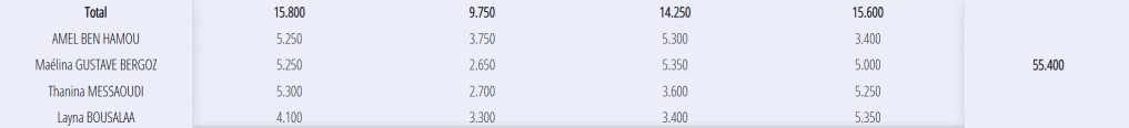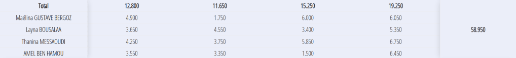 Equipe Fédéral A 7,5 : 9-11 ans Thanina, Layna, Maelina, amel départementale 1 5 sur 6 départementale 1 4 sur 5 départementale 1 3 sur 3