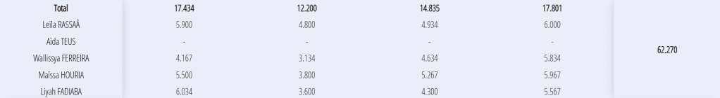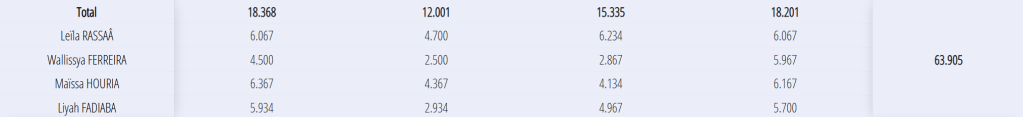 Equipe Fédérale A 7,5 : 10-13 ans wallissya, MAÏSSA, Leïla, Liyah départementale 1 6 sur 12 départementale 2 4 sur 8 FINALE départementale 1 sur 4