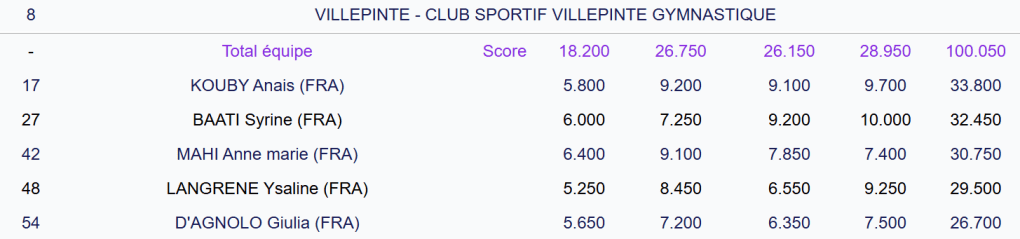 Equipe Fédérale B : 10-11 ans Anaïs, Syrine, Anne-Marie, Ysaline, Giulia Départementale 1 8 sur 12 Départementale 2 8 sur 11 Finale ID (C) 7 sur 10