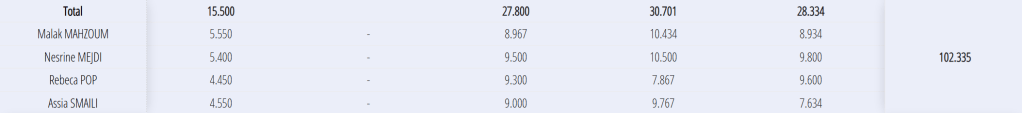 Equipe Fédérale B : 10-13 ans MALAK, nesrine, rebeca, assia départementale 10 sur 17 FINALE départementale 2 sur 10
