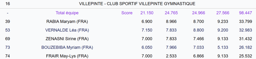 Equipe Fédérale B : 10-13 ans Maryam, Léa, Sirine, Myriam, May-Lys Départementale 1 16 sur 17 Départementale 2 16 sur 17 Finale Départementale 2 sur 5