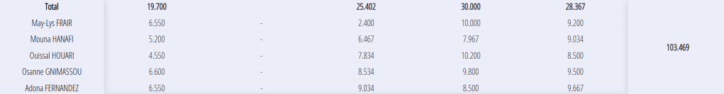 Equipe Fédérale B : 10 ans et + ADONA, May-lys, Mouna, Ouissal, Osanne départementale 1 sur 1 FINALE ID 11 sur 11