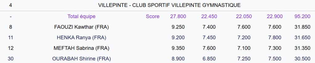 Equipe Fédérale B : 7-8 ans KawtHar, Ranya, Sabrina, Shirine Départementale 1 4 sur 12 Départementale 2 4 sur 12 Finale ID 3 sur 13