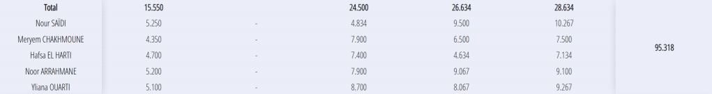 Equipe Fédérale B : 7-9 ans Nour, Meryem, Hafsa, Noor, Yliana départementale 10 sur 13 FINALE départementale 5 sur 8