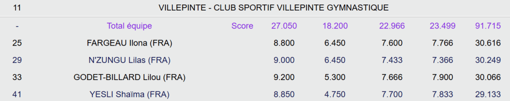 Equipe Fédérale B : 7-9 ans Sirine, LILOU, Ilona, Lilas, Shaïma Départementale 1 18 sur 22 Départementale 2 22 sur 22 Finale Départementale 11 sur 12