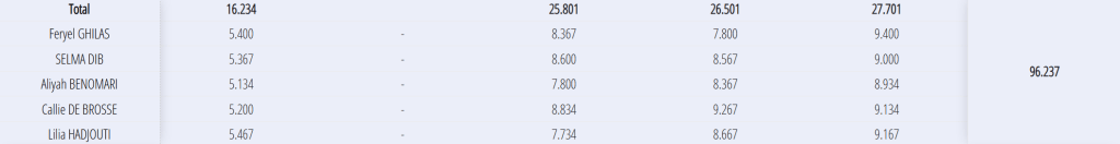 Equipe Fédérale B : 7-9 ans (Callie, Lilia, Selma, Aliyah, Feryel) départementale 16 sur 16 finale départementale 9 sur 10