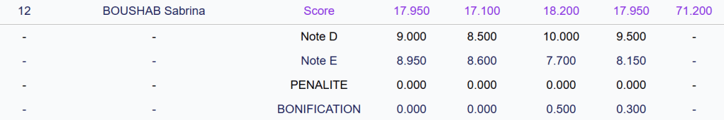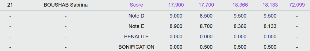 Individuelle Libre 3 : 10 ans Sabrina BOUSHAB Inter-Départementale 12 sur 23 Finale Régionale 21 sur 38